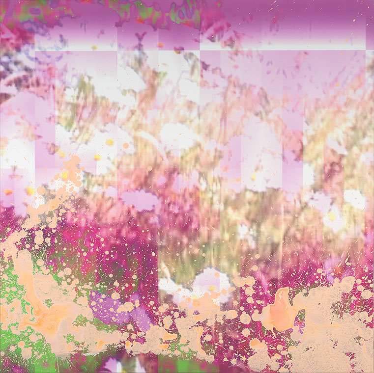 Collaboration Adrian Schiess & Annelies Štrba, Summerending, nicht datiert, Acrylfarbe auf Pigmentdruck auf Leinwand, 100 x 100 cm, Privatbesitz, © 2021, ProLitteris, Zurich, Foto: SIK-ISEA, Zürich (Martin Stollenwerk)