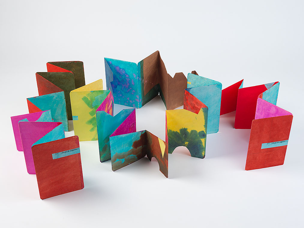Warja Lavater, Droit de réponse, 1982, Stofffarbe auf handgeschöpftem Papier, drei Leporellos, je 32 x 22,5 cm, Zentralbibliothek Zürich, © 2021, ProLitteris, Zurich, Foto: SIK-ISEA, Zürich (Martin Stollenwerk)