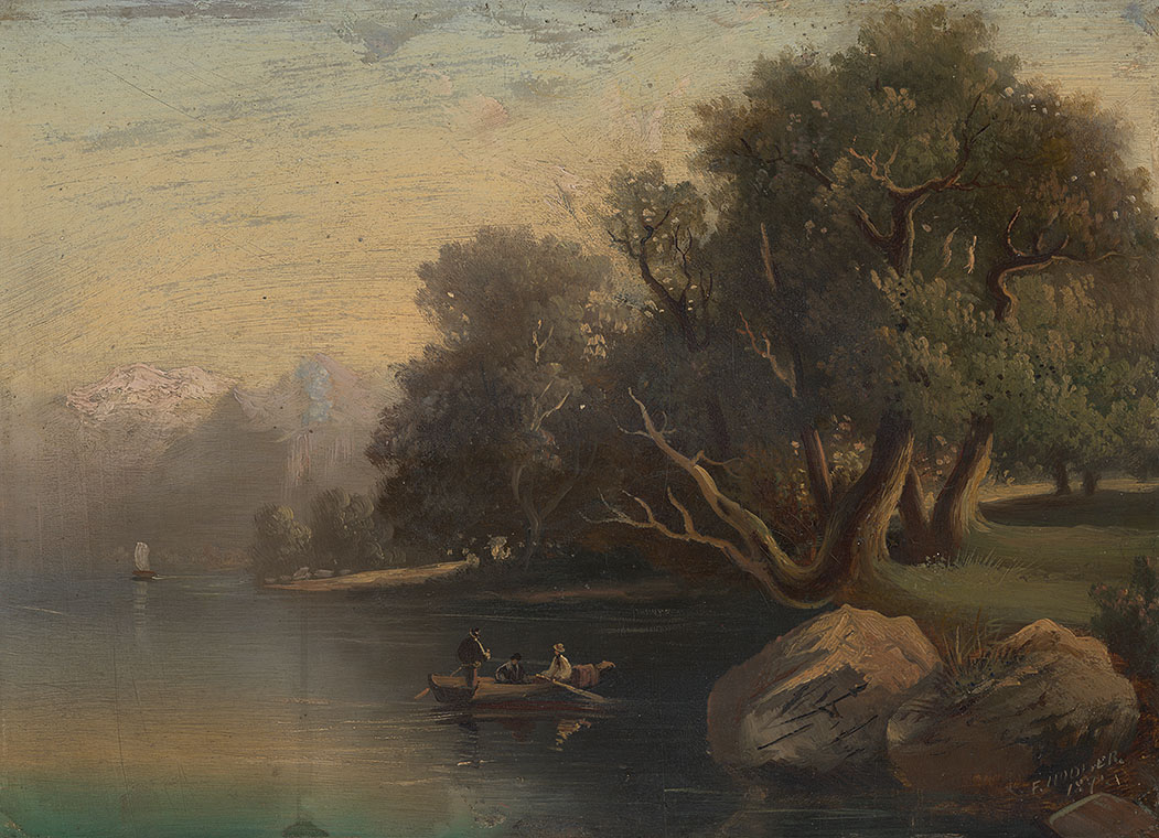 Ferdinand Hodler, Seebucht bei Spiez (nach Alexandre Calame), 1871, Ölfarbe auf Karton, 23 x 32 cm, Stadt Brugg, Foto: SIK-ISEA, Zürich (Martin Stollenwerk)