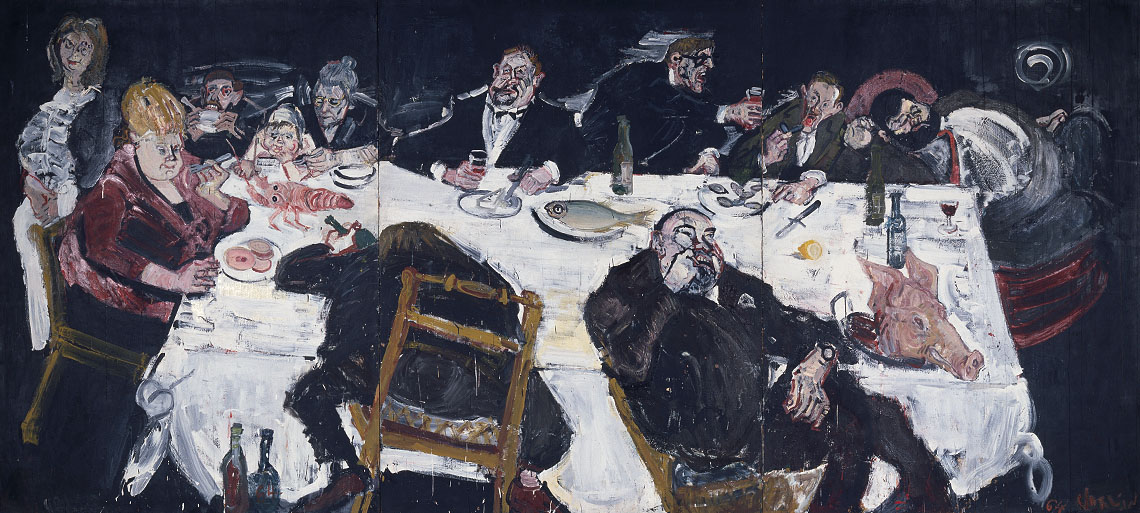 Varlin, Die Völlerei (Die Sinnenfreude), 1964, Öl und Acryl auf Holz, 239,5 x 532,5 cm, Privatbesitz (Archiv-Nr. 36621)