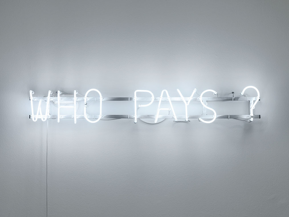 RELAX (chiarenza & hauser & co), WHO PAYS?, 2007, Neonschrift, Weisslicht, 20 x 160 cm, Kunstmuseum Liechtenstein, Vaduz (Archiv-Nr. 1712110035)