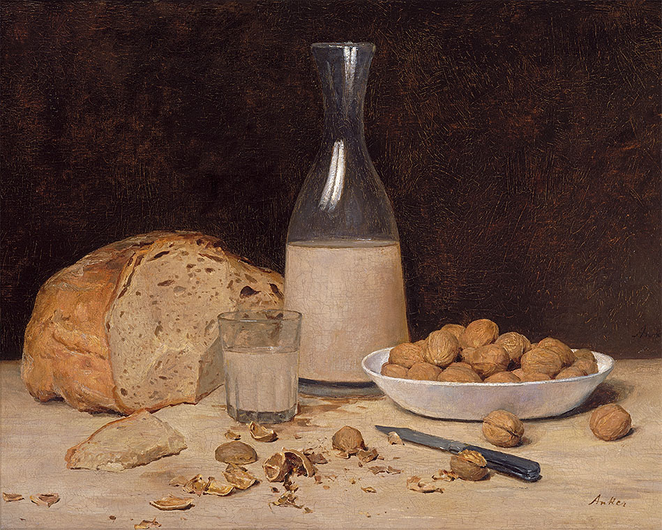Albert Anker, Stillleben: Neuer Wein, um 1890, Öl auf Leinwand, 41 x 52 cm, Privatbesitz (Archiv-Nr. 4494)