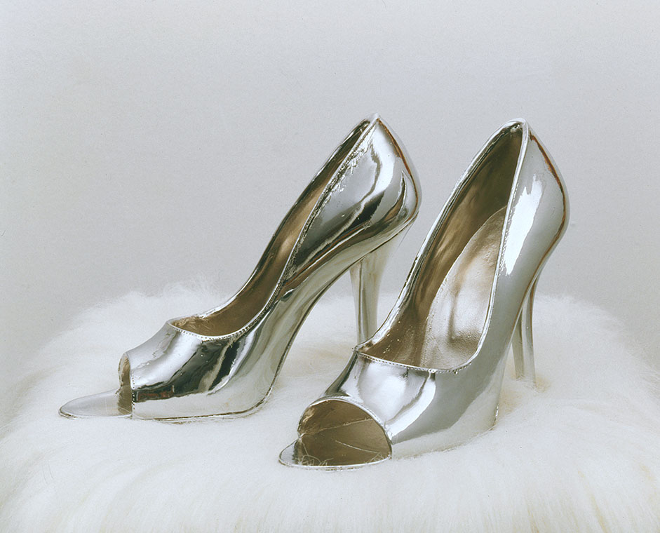 Sylvie Fleury, Gucci Shoes, 1999, Bronze verchromt, 15,5 x 20 x 7,5 cm, Privatbesitz (Archiv-Nr. 88678)