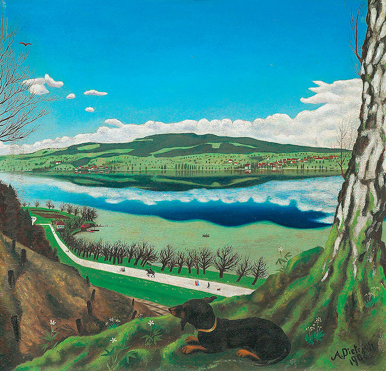 Adolf Dietrich, Frühlingslandschaft mit Schweizerland, 1908, Öl auf Karton, 30 x 30,5 cm, Privatbesitz (Archiv-Nr. 88722)