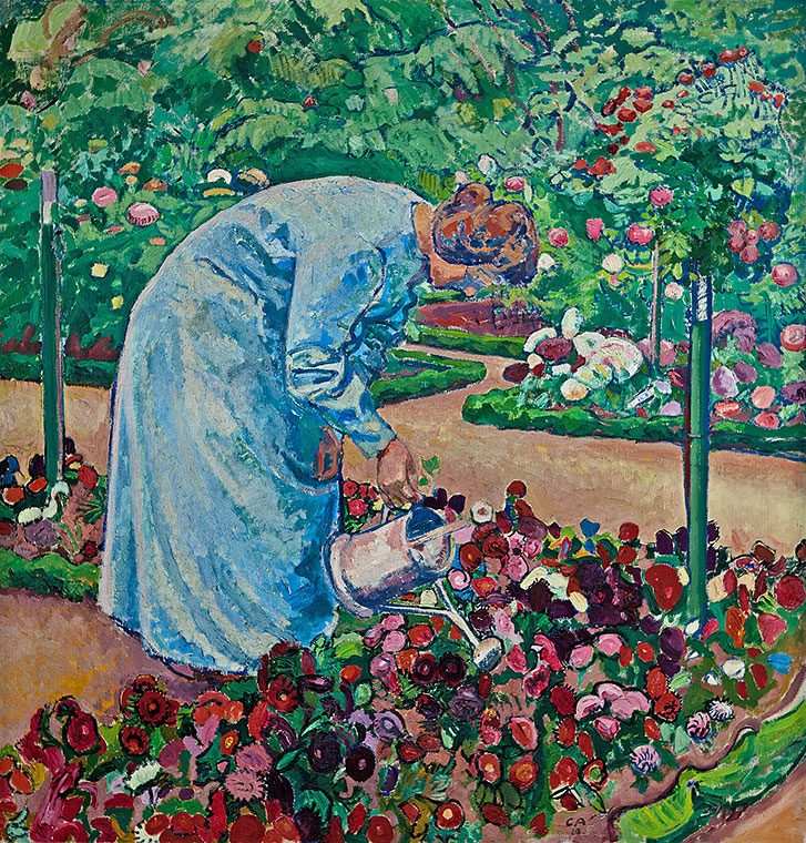 Cuno Amiet, Anna Amiet im Blumengarten, 1910, Öl auf Leinwand, 130 x 130 cm, Privatbesitz, © D. Thalmann, Aarau, Switzerland (Archiv-Nr. 34223)