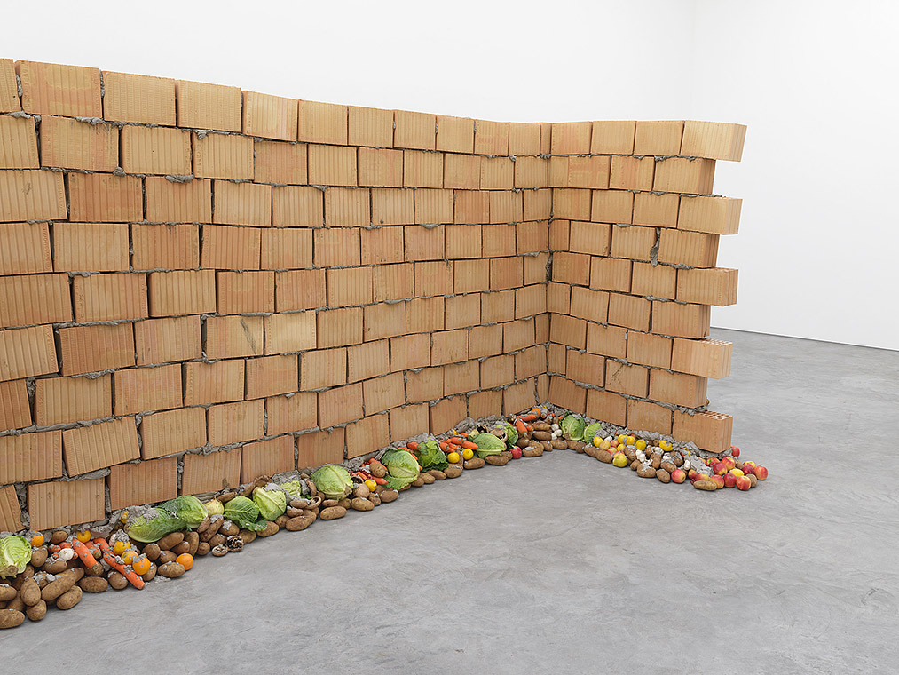 Urs Fischer, Faules Fundament (Rotten Foundation), 1998, Ziegelsteine, Mörtel, Früchte, Gemüse, Dimensionen variabel, Privatbesitz (Archiv-Nr. 2002190002)