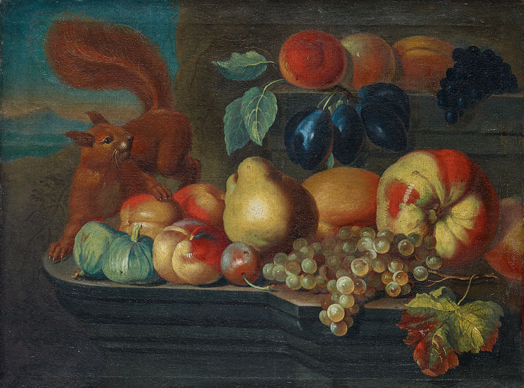 Anton Graff, Stillleben, verschiedene Früchte und ein Eichhörnchen, nicht datiert, Öl auf Leinwand, 48 x 62 cm, Privatbesitz (Archiv-Nr. 1812130007)