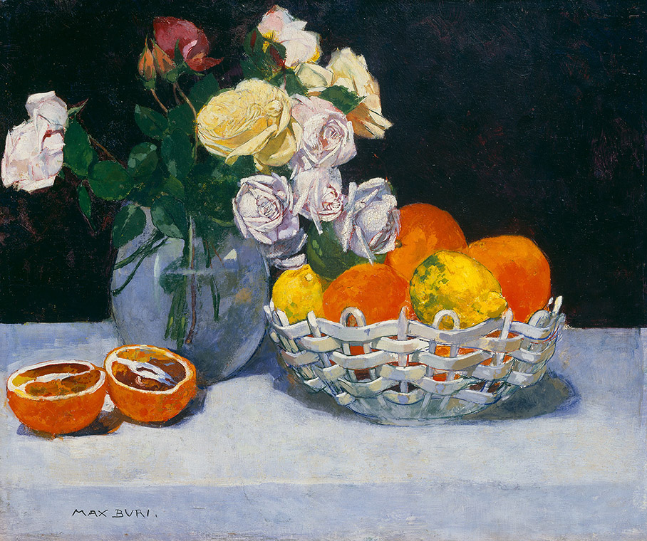 Max Buri, Stillleben mit Früchten und Blumen, nicht datiert, Öl auf Holz, 45 x 54 cm, Privatbesitz (Archiv-Nr. 59658)