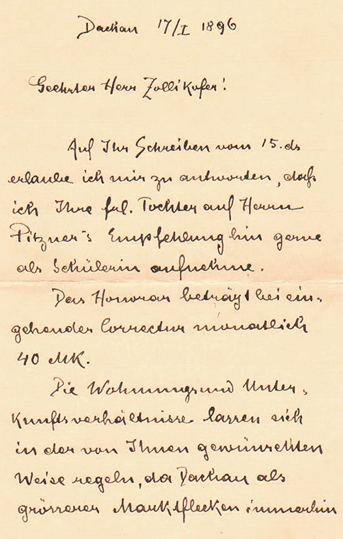 Brief von Adolf Hölzel an Carl Andreas Cunz-Zollikofer, 17. Januar 1896