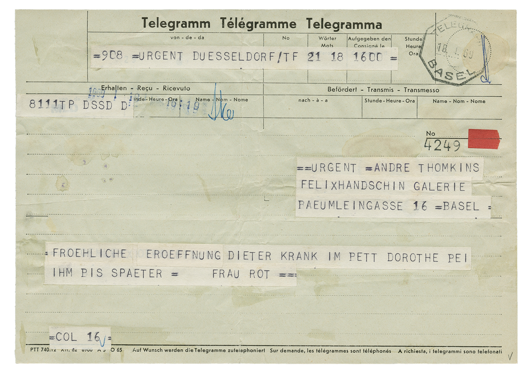 Telegramm von Dorothy Iannone an André Thomkins, 18. Januar 1969