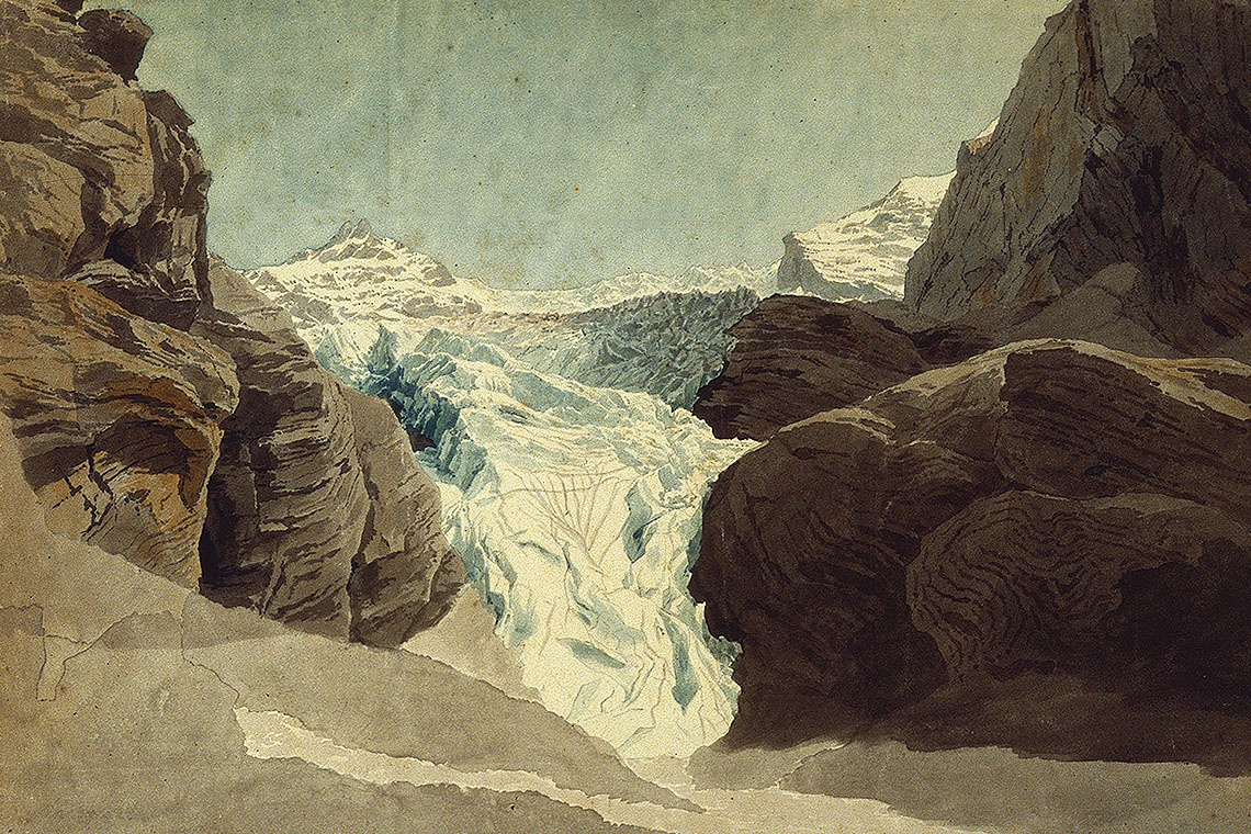 Johann Jakob Biedermann, The Rosenlaui Glacier, watercolour on semi-card, 48.5 x 77 cm, Kunstmuseum Winterthur, photo: SIK-ISEA, Zurich
