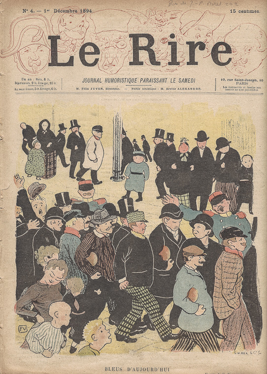Le Rire, 1. Dezember 1894, durch Bleus d’aujourdhui illustrierter Umschlag, Zeichnung von Félix Vallotton, Fondation Félix Vallotton, Lausanne, Foto: Fondation Félix Vallotton, Lausanne