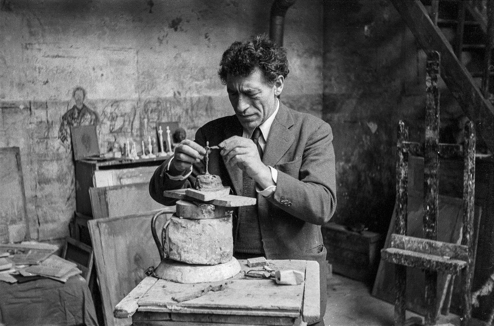 Maria Netter, Alberto Giacometti in seinem Atelier, Paris, 25.10.1955, Black & White Photography, SIK-ISEA, Courtesy Fotostiftung Schweiz (archive number 1407240005)