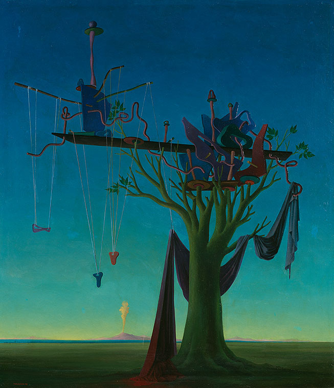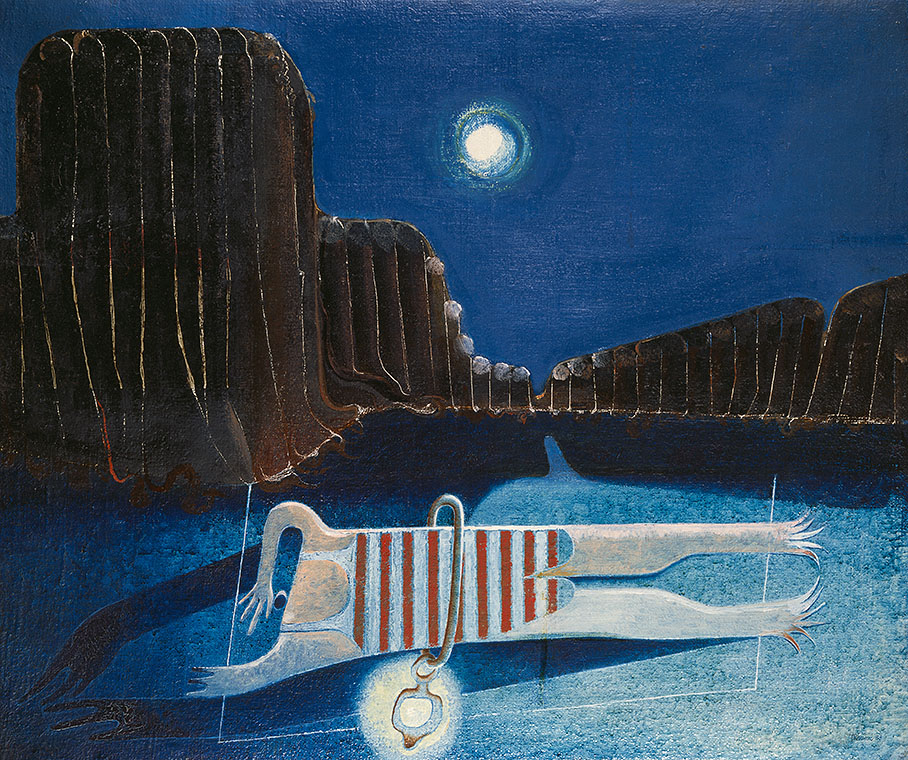 Otto Tschumi, Wenn man nachts schwimmt, muss man sich eine Laterne vor den Bauch binden, 1938, Öl auf Leinwand, 46 x 54 cm, Privatbesitz (Archiv-Nr.38285)