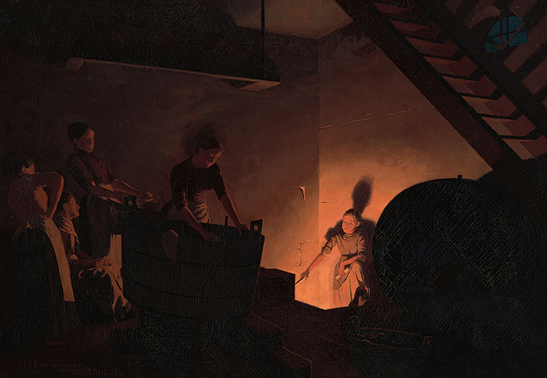 Hans Emmenegger, Feierabend am Waschbecken, 1889, Öl auf Leinwand, 65 x 92 cm, Privatbesitz (Archiv Nr. 1304220005)