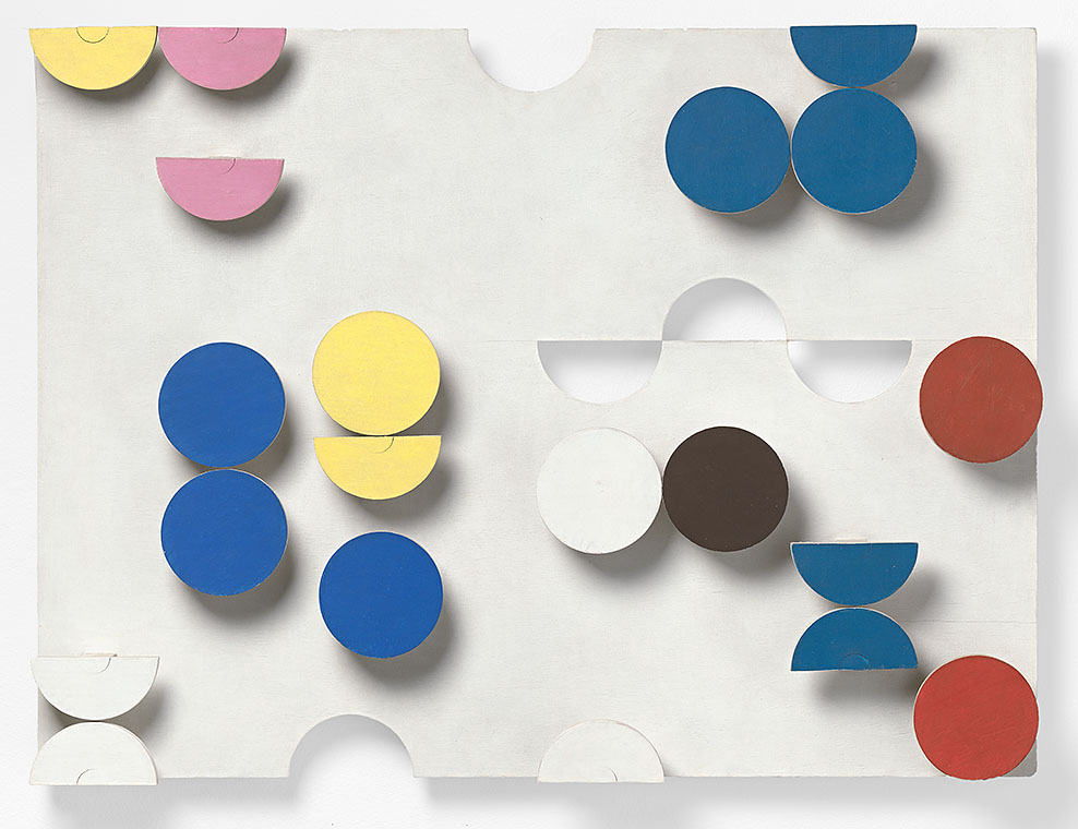 Sophie Taeuber, Relief rectangulaire, cercles découpés, rondelles sur tiges, 1936, Öl auf Holz, 60 x 80 x 8 cm, Kunst Museum Winterthur (Archiv-Nr. 1401290009)