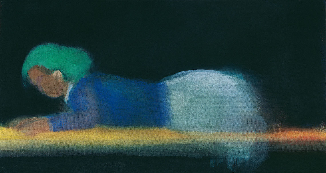 Leiko Ikemura, Liegende auf Schwarz, 1998 / 1999, Öl auf Leinwand, 80 x 150 x 3 cm, Toyota Municipal Museum of Art, Toyota (Archiv-Nr. 1706010004)