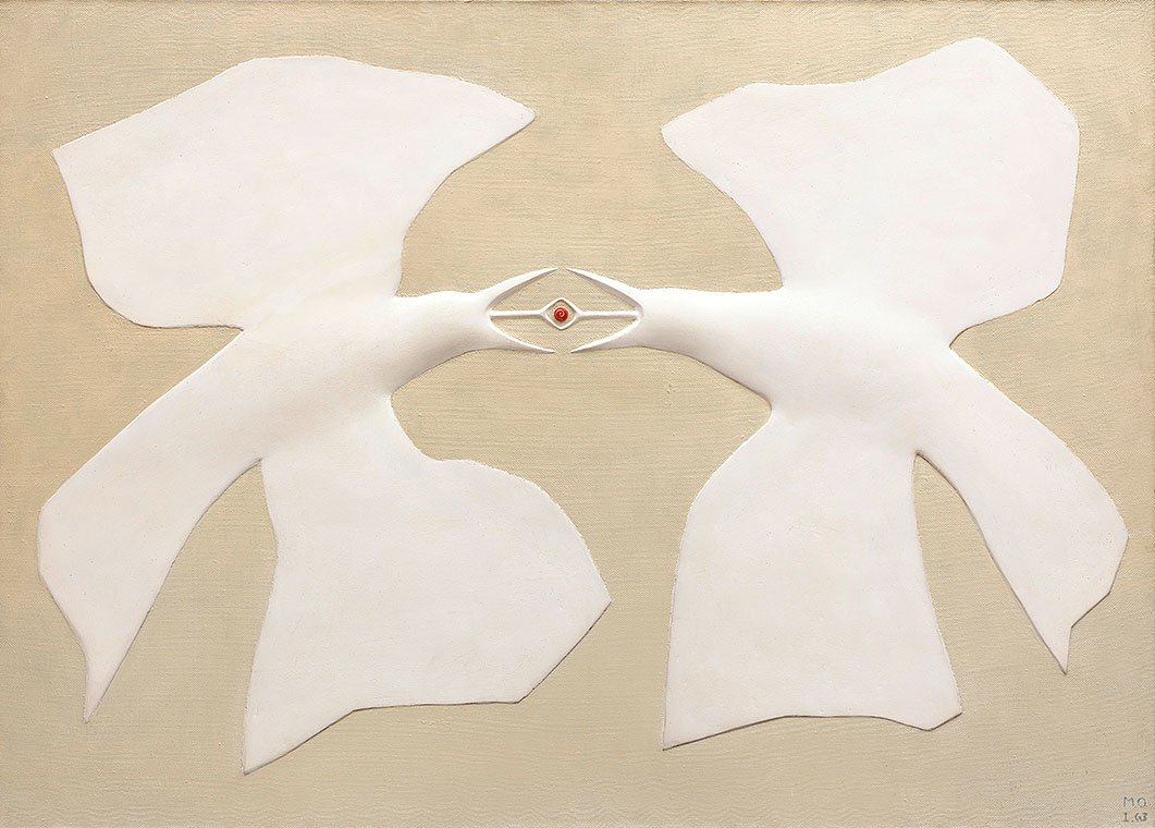 Meret Oppenheim, Zwei Vögel, 1963, Öl und weisse Eitempera auf Leinwand, 90 x 125 cm, Privatbesitz (Archiv-Nr. 1401280024)