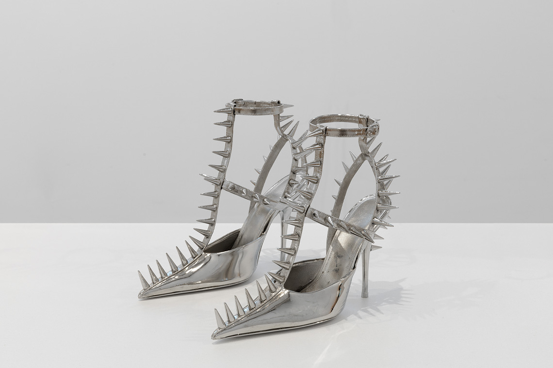 Sylvie Fleury, Balenciaga Knife Pumps, 2019, Bronze, vernickelt, 25 x 23 x 11 cm, Privatbesitz (SIK-ISEA-Inventarnummer 2211070008)