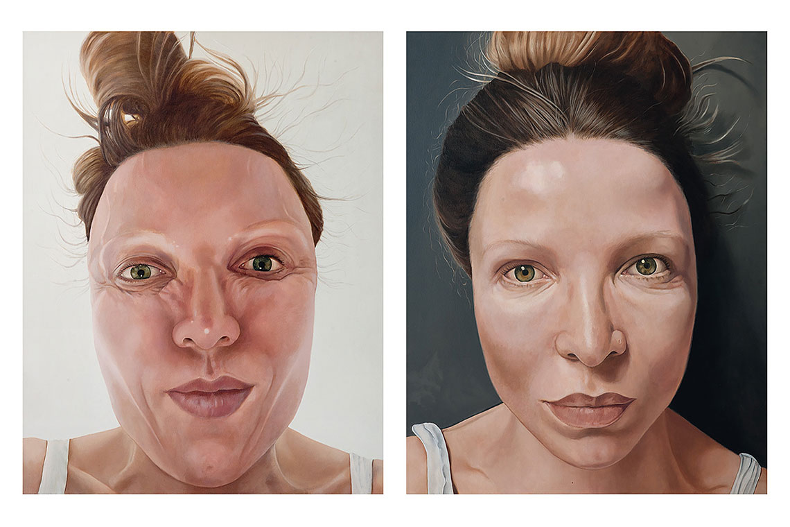 Karoline Schreiber, Newton I und Newton II, 2017, Öl auf Leinwand, je 140 x 110 cm, Standort unbekannt (SIK-ISEA-Inventarnummer 2112130003)
