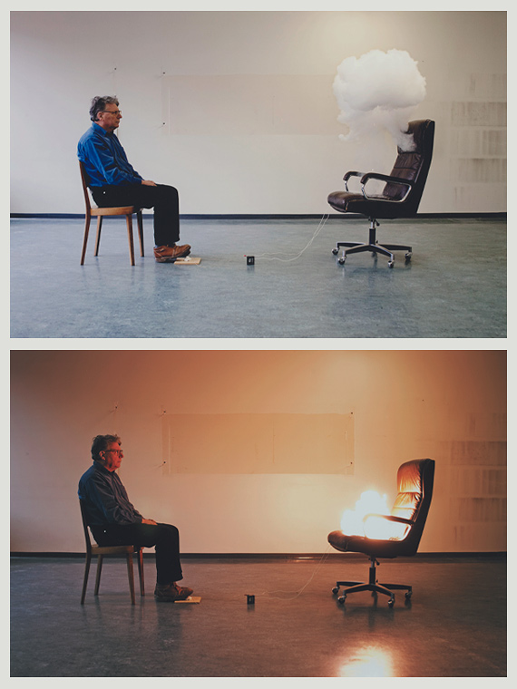 Roman Signer, Beim Chef II, 2009, Fotografie, Exemplar 1/10 (+ III a.c.), zweiteilig, je 41,5 x 56 cm (Rahmenmass), Schweizerische Nationalbank, Zürich (SIK-ISEA-Inventarnummer 2104120009)