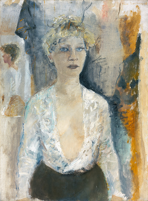 Irène Zurkinden, Selbstbildnis mit weisser Spitzenbluse, 1935, huile sur toile, 73,5 x 54,5 cm, lieu de conservation inconnu (numéro d’inventaire SIK-ISEA 98162)