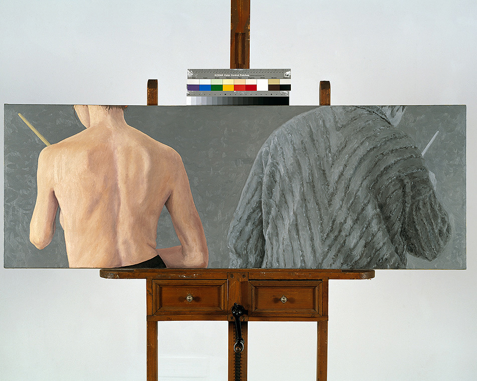 Guido Nussbaum, Rücksicht, 1984, huile sur toile, Aargauer Kunsthaus (numéro d’inventaire SIK-ISEA 1202270004)