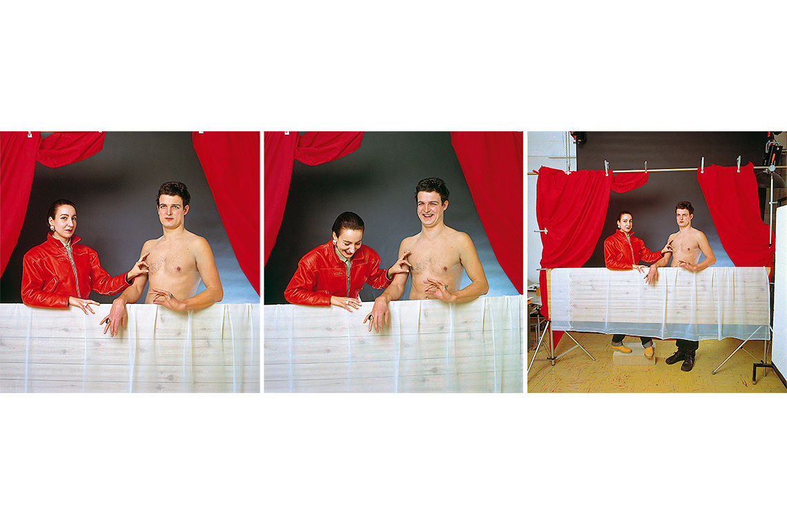 RELAX (chiarenza & hauser &co), du bist was du siehst wir sind was du willst, 1991, photographie sur aluminium, 3 volets, 100 x 100 cm chacune, Aargauer Kunsthaus (numéro d’inventaire SIK-ISEA 91644)