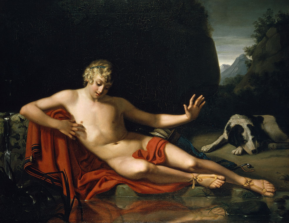 Johann Caspar Weidenmann, Narziss, sein Spiegelbild im Wasser betrachtend, nicht datiert, Öl auf Leinwand, 134 x 173 cm, Kunst Museum Winterthur (Archiv-Nr. 31510)