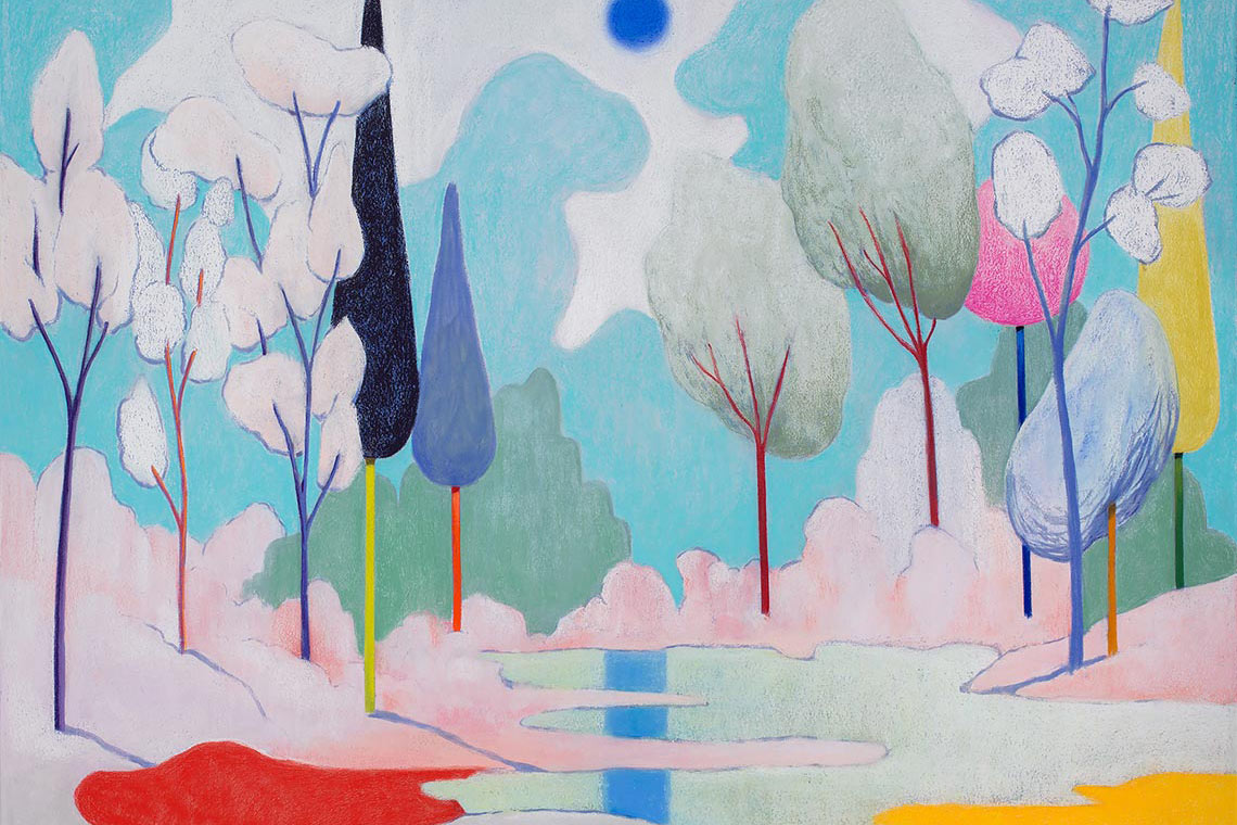 Nicolas Party, Sunrise, 2018, Pastell auf Leinwand, 160 x 180 cm, Standort unbekannt (SIK-ISEA-Inventarnummer 2003090006)